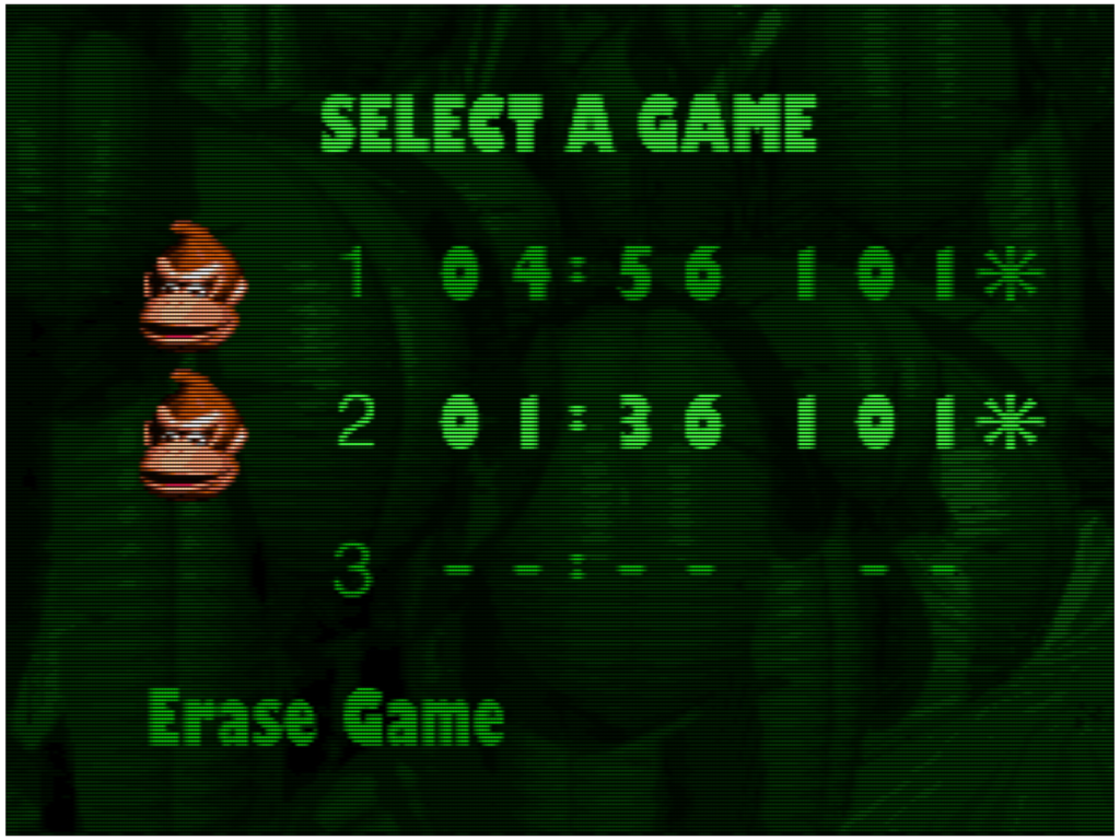 Donkey Kong Country é um jogo de uma era que começava a se distanciar dos clássicos de arcade. Isso pode ser observado, por exemplo, pelo fato de não haver pontuação no jogo, algo sem sentido em consoles caseiros, geralmente jogados por poucas pessoas. Além disso, a capacidade de salvar o progresso, graças a uma bateria acoplada no cartucho, resolveu problemas como passwords digitados de forma errada e perdas de progresso. Mas, para usufruir disso, era preciso ser um privilegiado de posse de uma cópia original; as versões piratas da época não tinham a tecnologia necessária.